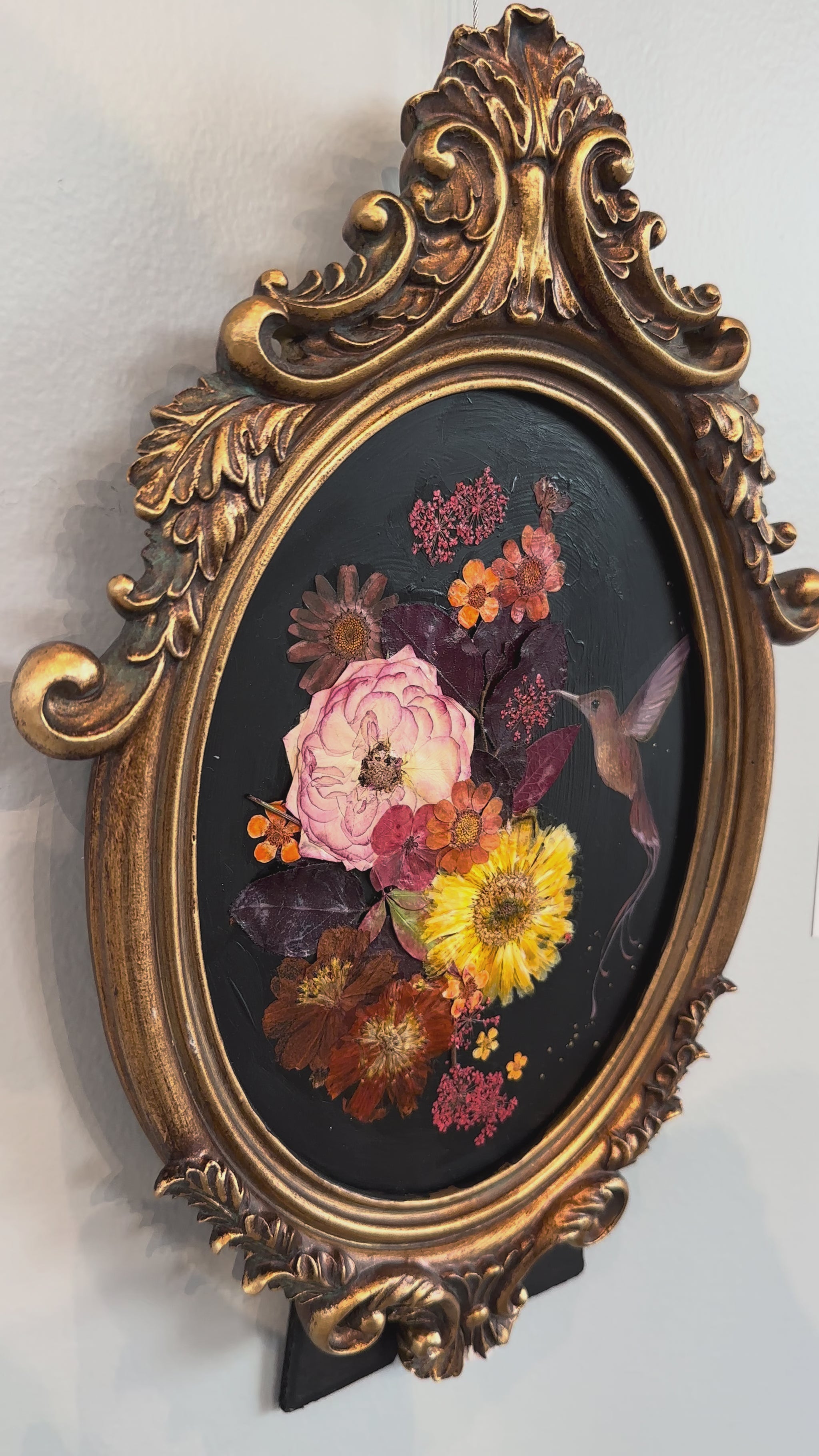 oil and dried flowers on glass